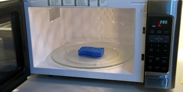 11. Bỏ miếng bọt biển ướt vào trong lò vi sóng trong 1 phút để loại bỏ hoàn toàn những vi khuẩn trong nó.