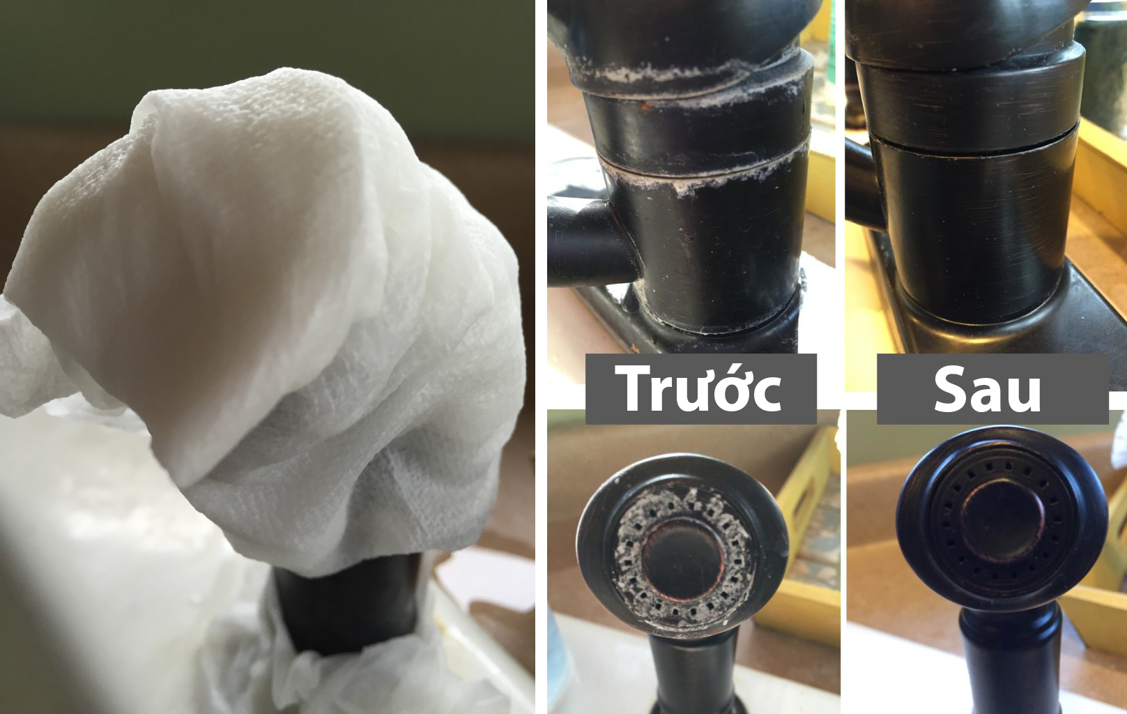 4. Ngâm giấy vào trong giấm và quấn quanh đầu ống nước bị két bẩn, rồi để nguyên trong 1 giờ. Sau đó lau sạch lại, bạn sẽ thấy các vết han rỉ đã hoàn toàn biến mất.