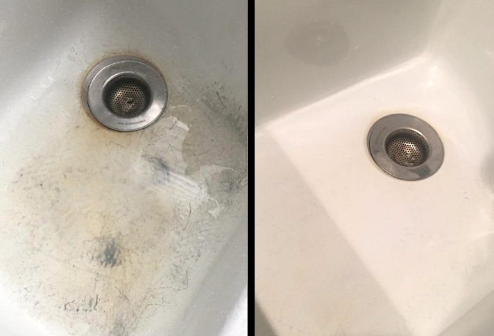 7. Trộn baking soda với oxy già và lau những cặn bẩn xung quanh khu vực thoát nước ở bồn rửa mặt hay bồn rửa bát.