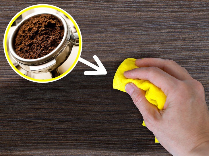 Thay vì bỏ bã cà phê đi, hãy tận dụng chúng bằng cách lấy một miếng vải, nhúng vào bã và chà lên mặt gỗ. Nó sẽ giúp đồ gỗ nhà bạn sáng, sạch và thơm mùi cà phê dễ chịu.