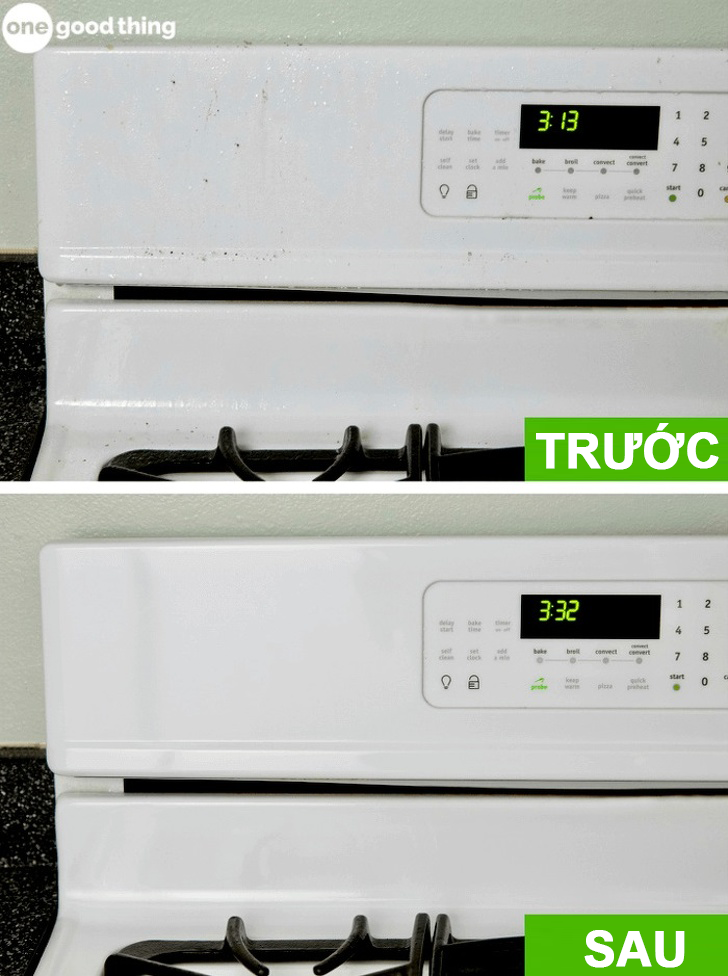 Nghe thì có vẻ kỳ lạ nhưng thật sự dầu thực vật có thể loại bỏ dầu mỡ dễ dàng. Nhỏ một vài giọt dầu thực vật vào khăn giấy hoặc khăn bông mềm, lau bếp bị bám dầu mỡ. Bề mặt bếp sẽ sạch bong kin kít trong nháy mắt.