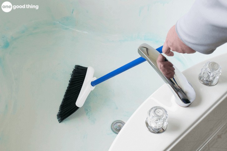 Bồn tắm khá sâu và sẽ khá vất vả khi bạn phải cúi xuống để lau chùi. Vậy nên để việc dọn dẹp trở nên dễ dàng hơn, thay vì dùng bàn chải, bạn có thể dùng chổi nhựa. Phương pháp này sẽ vô cùng hữu hiệu với những người cao tuổi xương yếu hoặc những người đau mỏi lưng không cúi được.
