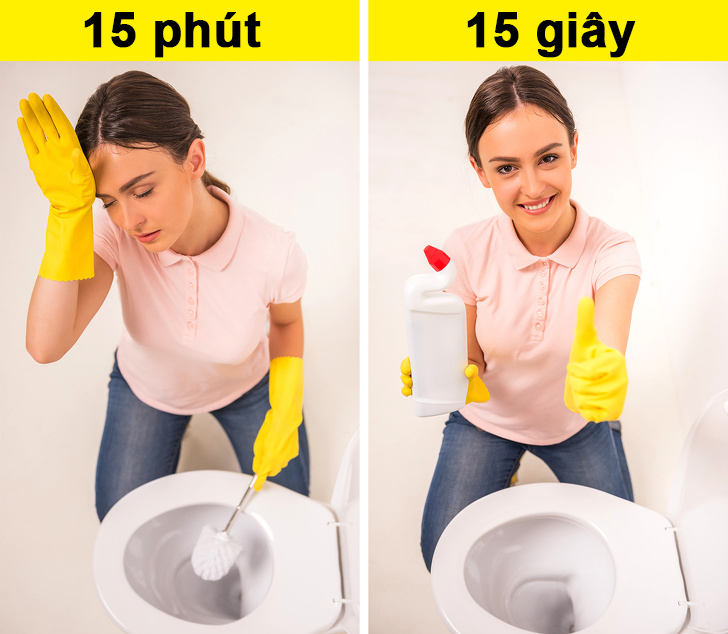 Để tiết kiệm thời gian, hãy đổ chất tẩy rửa vào bồn cầu trước khi chà, sau đó dùng cọ để tẩy rửa tất cả những vết bẩn.