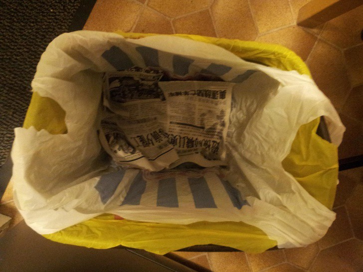 Khi đặt báo vào trong đáy túi rác, nó sẽ thấm hết các chất lỏng, và giữ cho rác của bạn khô, tránh những mùi hôi khó chịu.