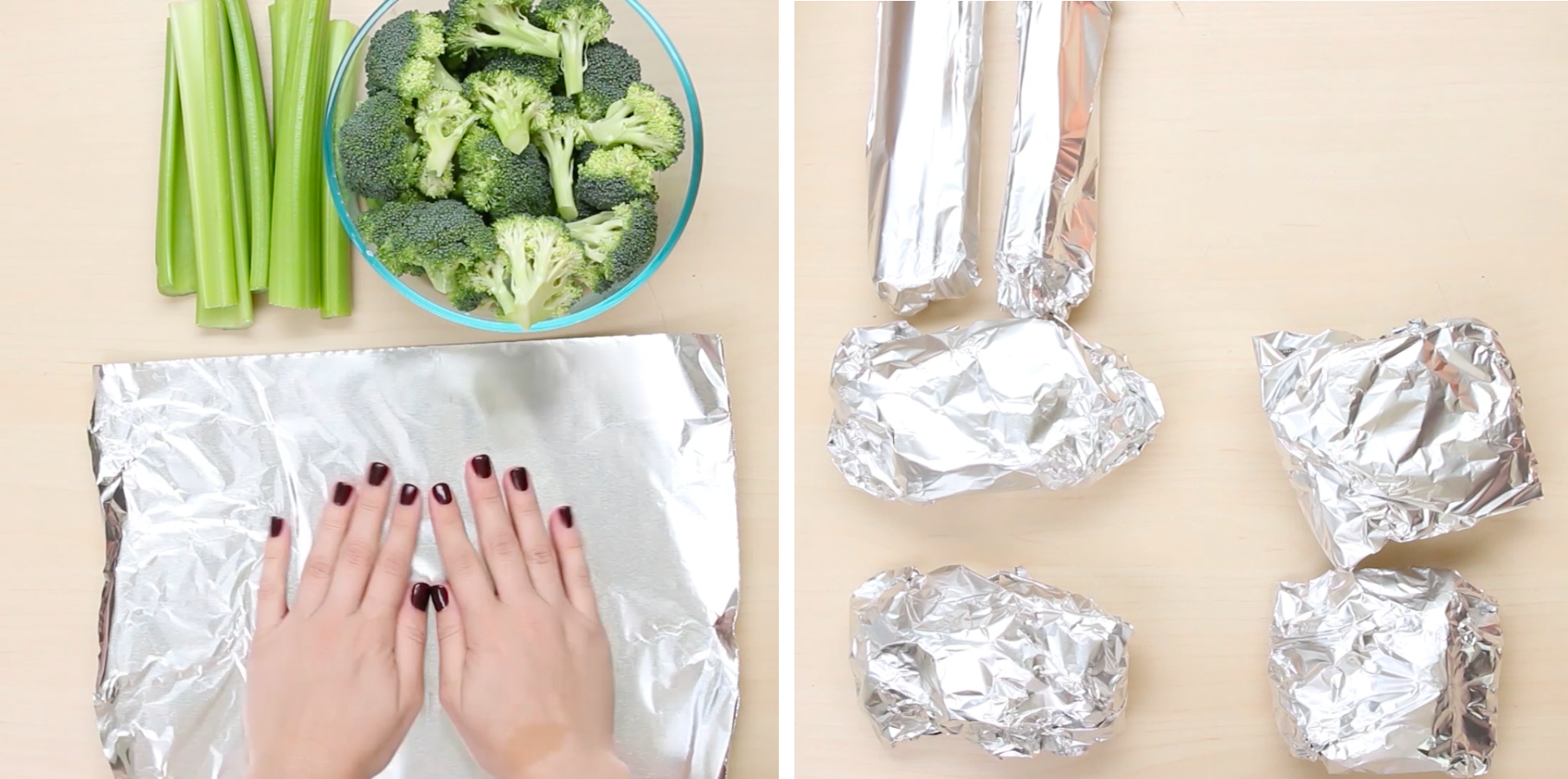 4. Bọc cần tây và súp lơ xanh trong lá nhôm