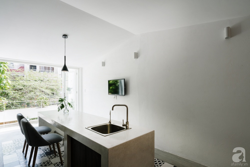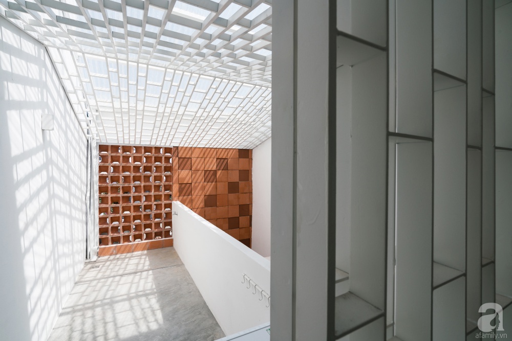 Với không gian chật hẹp, các kiến trúc sư đã khéo léo chọn màu trắng làm gam màu chủ đạo giúp mọi khoảng diện tích đều như được nhân đôi khi ngắm nhìn. Những tay vịn cầu thang được phá bỏ, thay vào đó là những thanh kim loại được sơn trắng để mỗi khoảng diện tích đều trở nên thanh thoát và rộng rãi hơn nhiều so với diện tích thực.