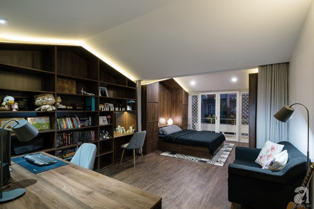 Rèm cửa ngăn cách hai khu vực chức năng, tạo nên những khoảng tiện ích và vẻ đẹp hiện đại cho khoảng sàn tầng 3.