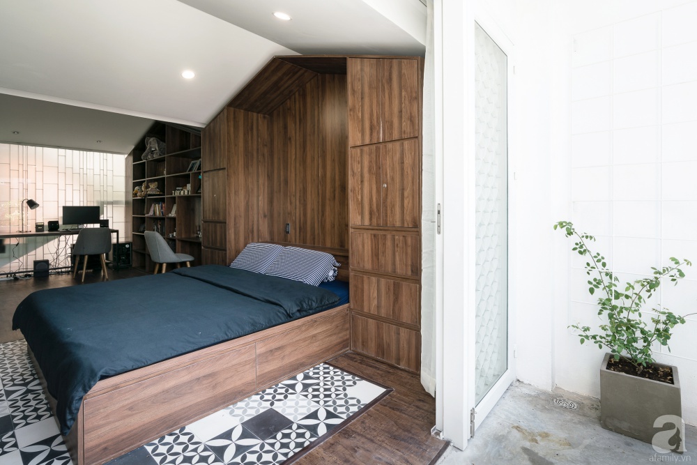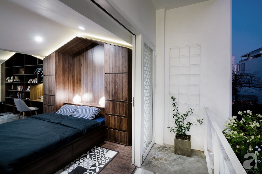 Phòng ngủ được đặt ngay cạnh ban công với thiết kế đơn giản nhất có thể. Chất liệu và màu sắc của gỗ luôn được ưu ái để mang đến vẻ đẹp bình yên, dịu dàng cho ngôi nhà.