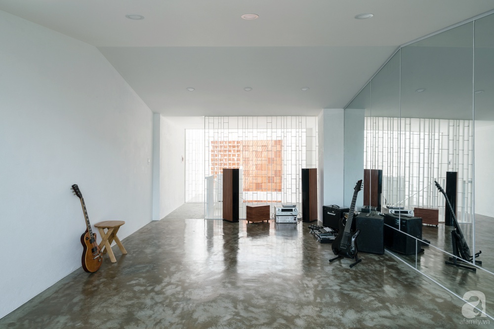 Mọi không gian đều ngập tràn ánh sáng, dung dị với vẻ đẹp của xi măng, của gạch, thanh thoát với vẻ đẹp của ánh sáng dịu dàng pha trộn giữa đèn chiếu và ánh sáng tự nhiên.