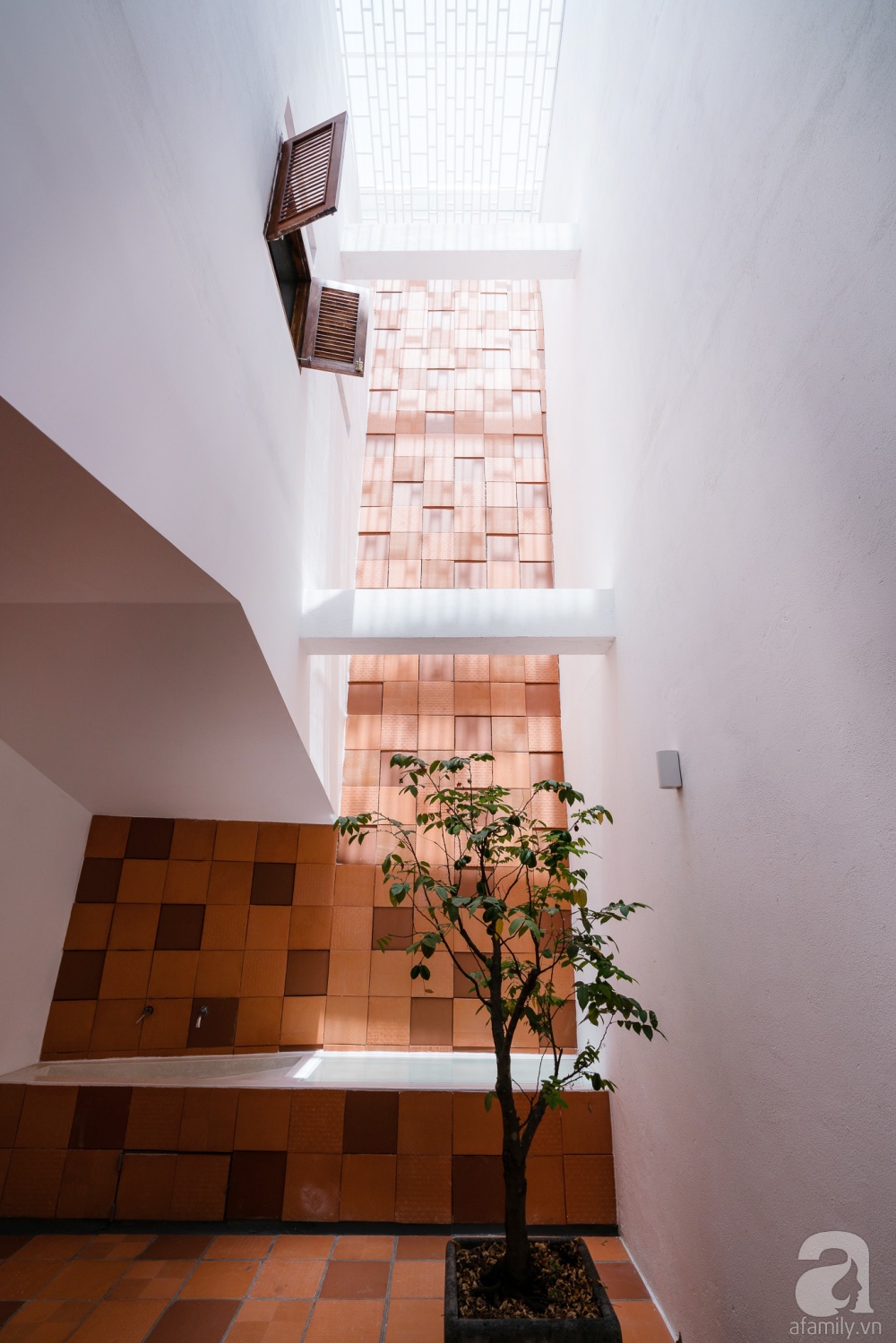 Thành công của ngôi nhà phố không chỉ bởi cách thiết kế các công năng của các tầng mà còn bởi sự sắp đặt khéo léo của ánh sáng từ các khoảng thông tầng. Điểm nhấn từ cây xanh cho không gian bên trong kết nối thật gần với thiên nhiên và nắng gió bên ngoài.