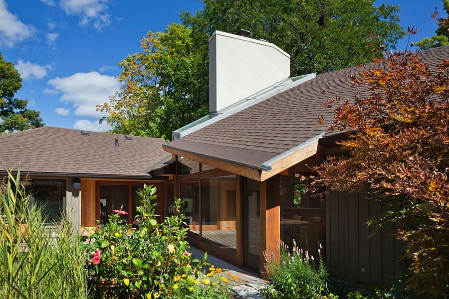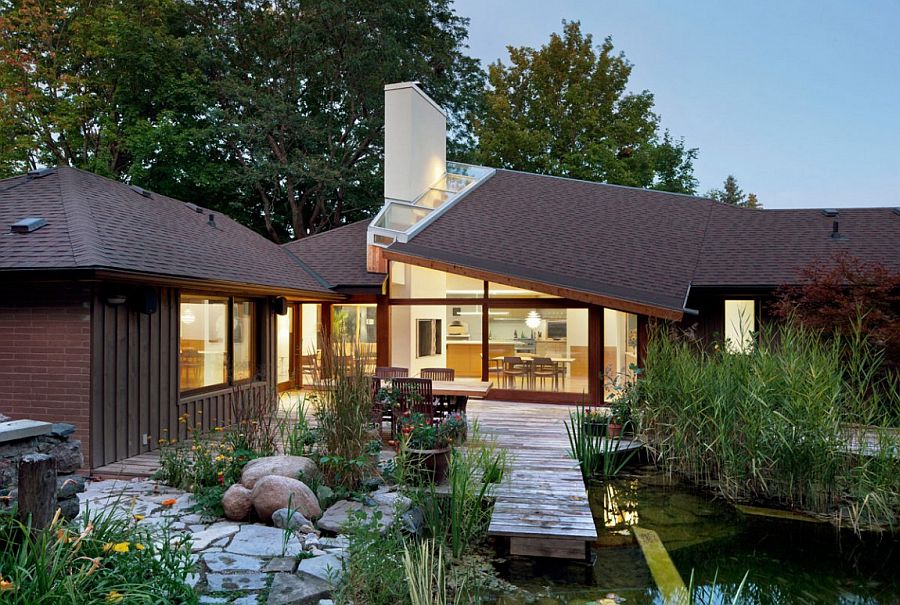 Không có gì tuyệt vời và quyến rũ hơn khi có một cảnh quan thiên nhiên đẹp bao quanh ngôi nhà và giúp bạn có một nơi nghỉ ngơi riêng tư cần thiết. Nằm ở Peterborough, Ontario, Canada, ngôi nhà này không chỉ có một khu vườn đẹp mà còn có một ao cá tự nhiên cho phép bạn thư giãn sau một ngày dài mệt mỏi. Đặc biệt, phong cách thiết kế giữa không gian nội thất và không gian sân vườn mở không hề có chút ranh giới là điểm cộng cực kỳ lớn.