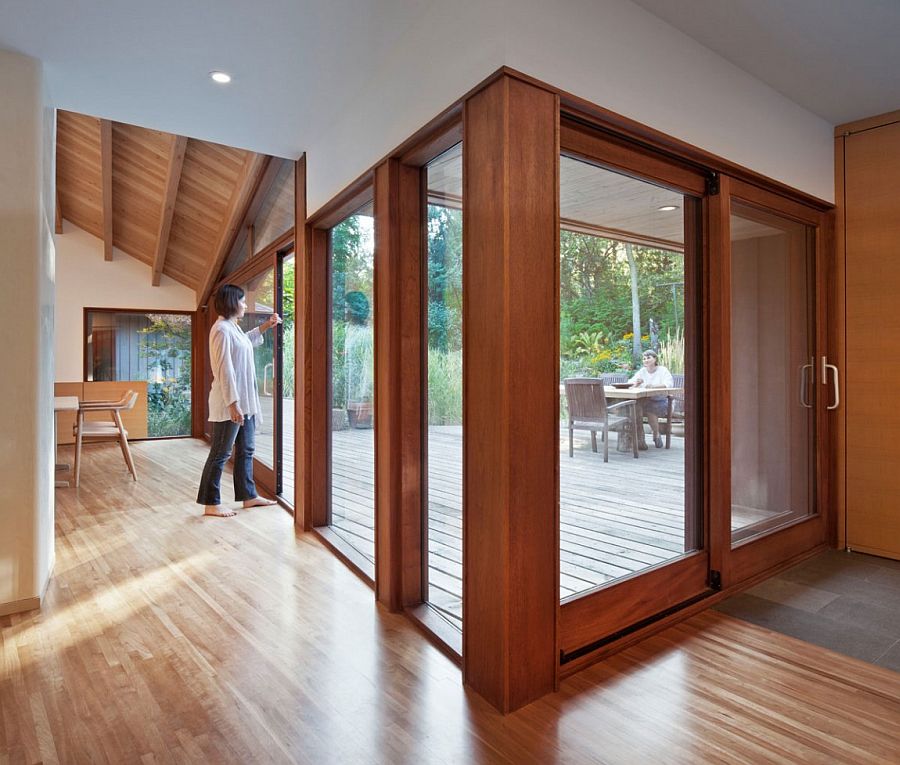 Toàn bộ các không gian sống trong ngôi nhà đều có tầm nhìn không bị hạn chế khiến mắt ta luôn thấy được toàn bộ cây xanh ở bên ngoài. Chất liệu gỗ kết hợp với đá cẩm thạch và gạch của Tây Ban Nha tạo cho ngôi nhà một không khí ấm áp, cổ điển. Gỗ là thành phần chính cấu tạo nên trần nhà, sàn trong mỗi phòng cho đến nhà bếp, tủ quần áo, bàn ghế, ... trong khi đó bảng màu trung tính được tin tưởng để sử dụng.