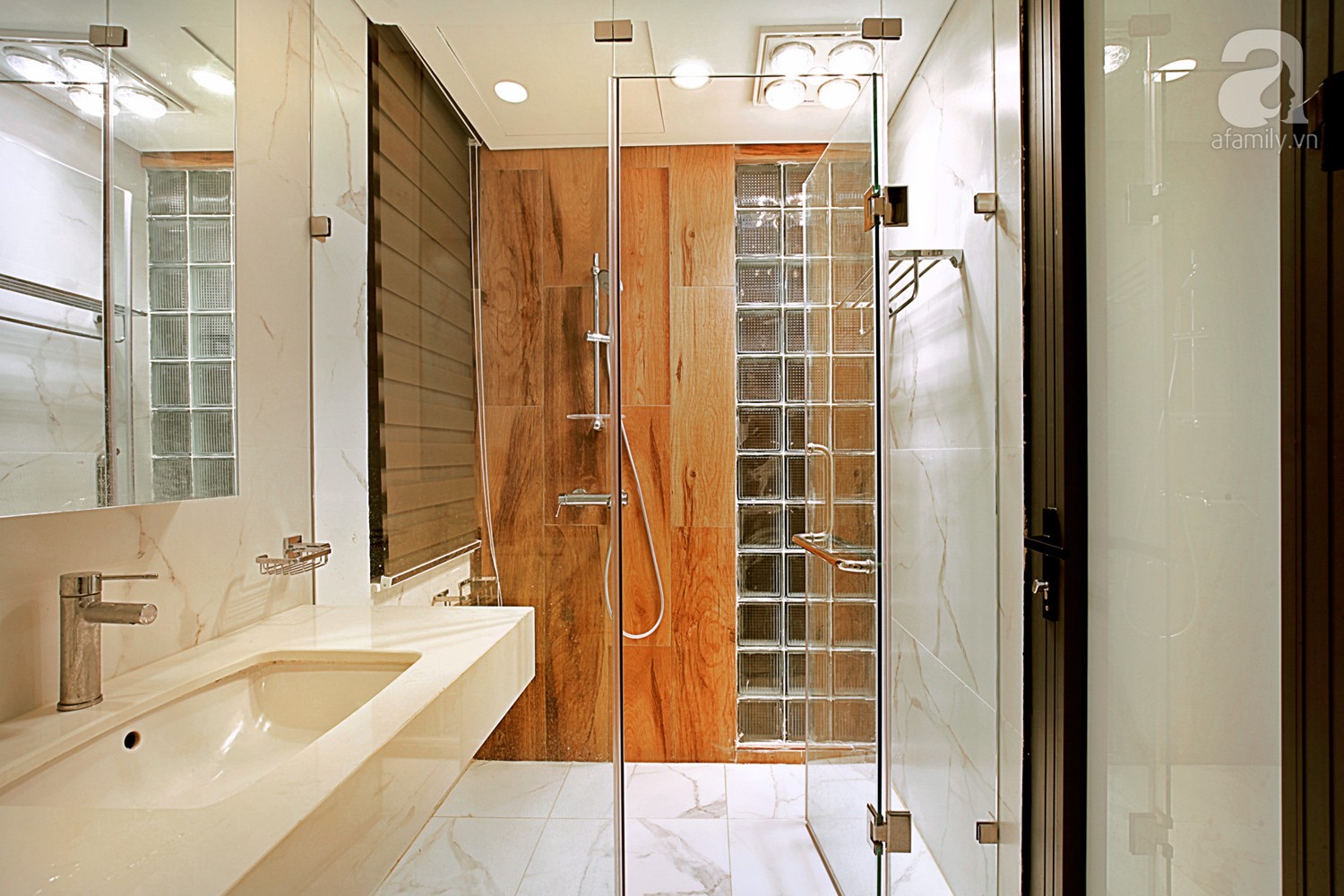 Được biết tổng chi phí để hoàn thiện nội thất của ngôi biệt thự này là 480 triệu đồng. Trong đó để tối ưu và tạo sự đồng nhất trong không gian, anh Kiên đã đặt đóng toàn bộ nội thất trong nhà. Theo anh tiết lộ, một trong những không gian thú vị nhất trong nhà phải kể đến là WC ở tầng 1. WC được anh "giấu" trong vách gỗ dưới gầm cầu thang rất gọn gàng.