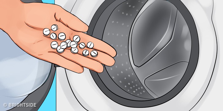 1. Cho aspirin vào máy giặt để quần áo trắng sạch hơn