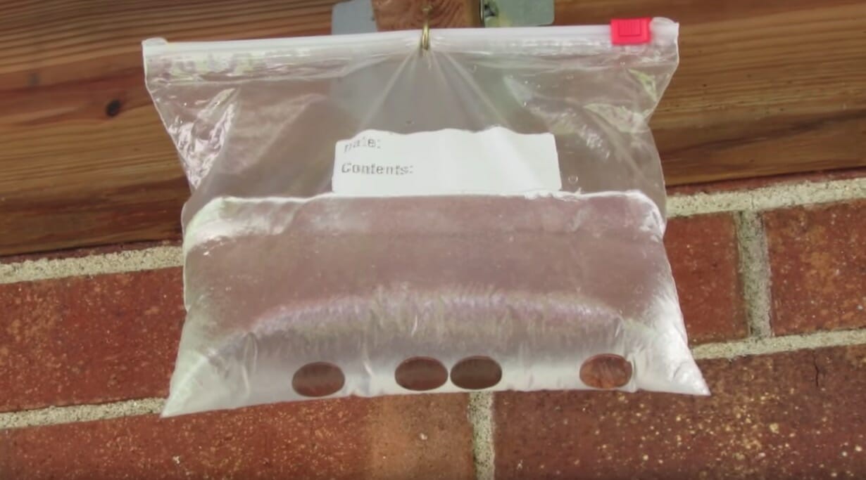 Sau khi đổ nước vào túi rồi, hãy treo ở trước cửa ra vào, cửa sổ của nhà. Ánh sáng là điều cần thiết để chiếc bẫy này hoạt động tốt. Do đó, vào buổi tối, bạn nên treo ở nơi có ánh sáng rọi vào.