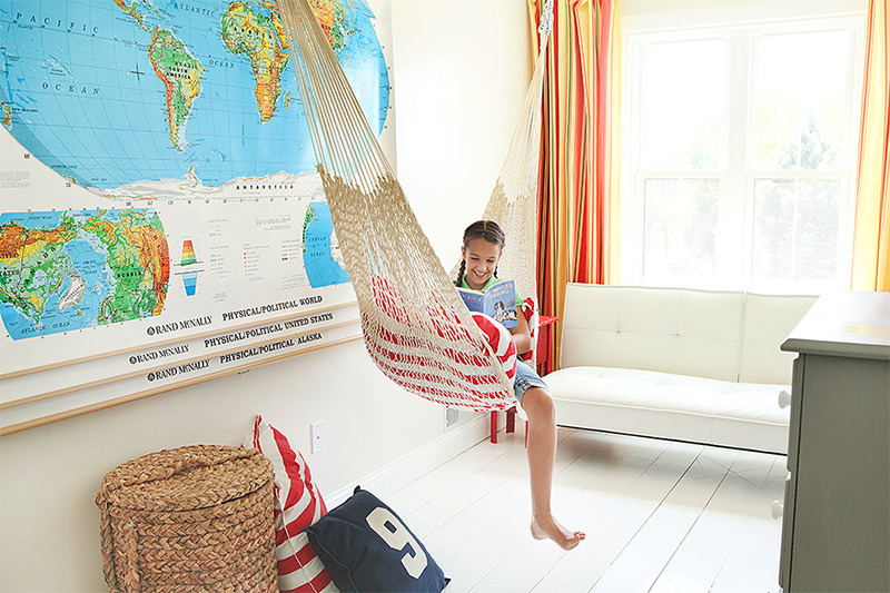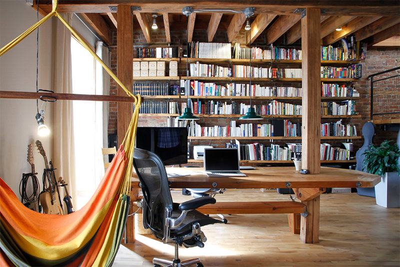 Trong không gian thư viện vốn dĩ hơi nhàm chán, thì màu sắc của chiếc võng có thể rực rỡ và bắt mắt giống như thế này.