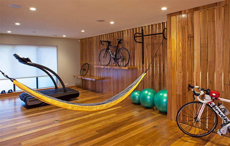 Trong không gian sặc mùi thể thao thế này thì chiếc võng màu vàng theo phong cách "dã chiến" dành cho việc leo núi có vẻ sẽ rất thích hợp.
