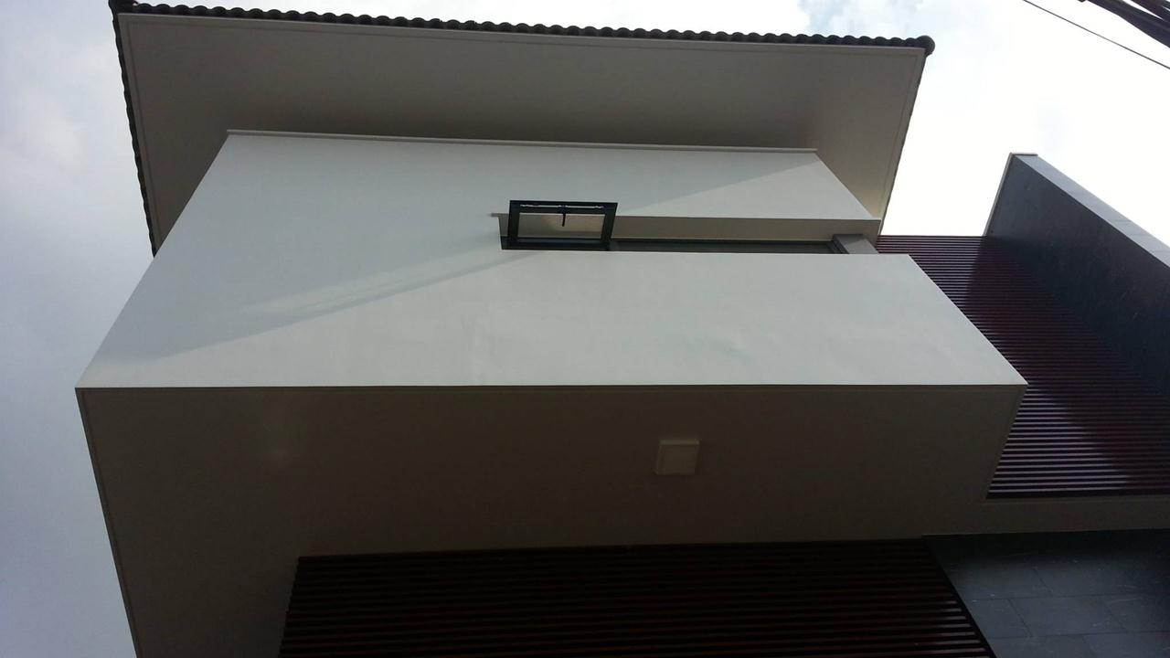 Đặc điểm khí hậu khu vực này là nắng nóng nên giải pháp vươn viền mái ra xa nhằm tạo hiệu ứng bóng đổ, và giảm ánh nắng trực tiếp vào công trình.